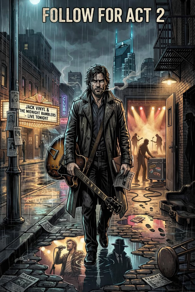 The adventures of Jack Vinyl. By night, he’s the magnetic frontman of a traveling rock band — all velvet voice and stage lights. By later that same night… he’s something else.