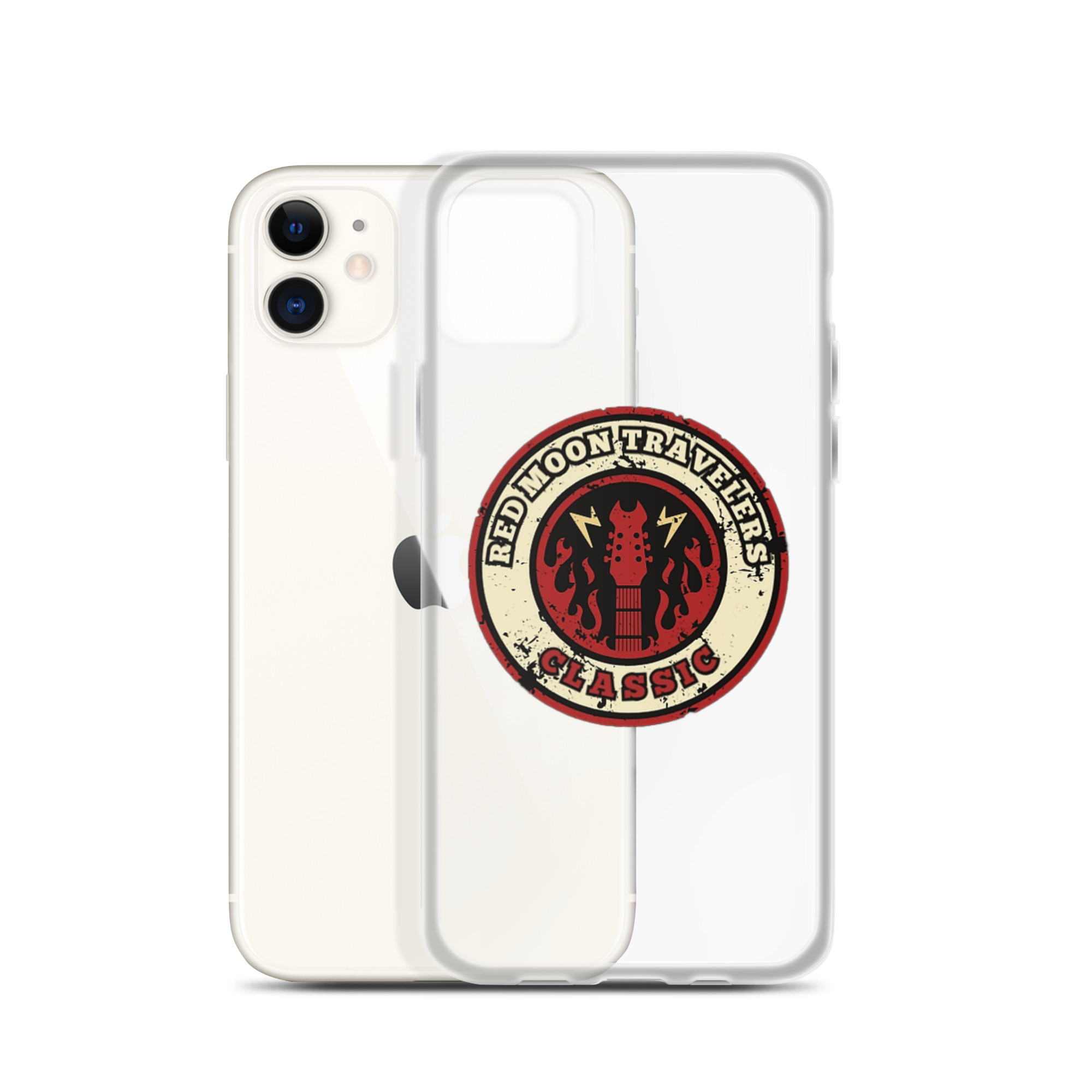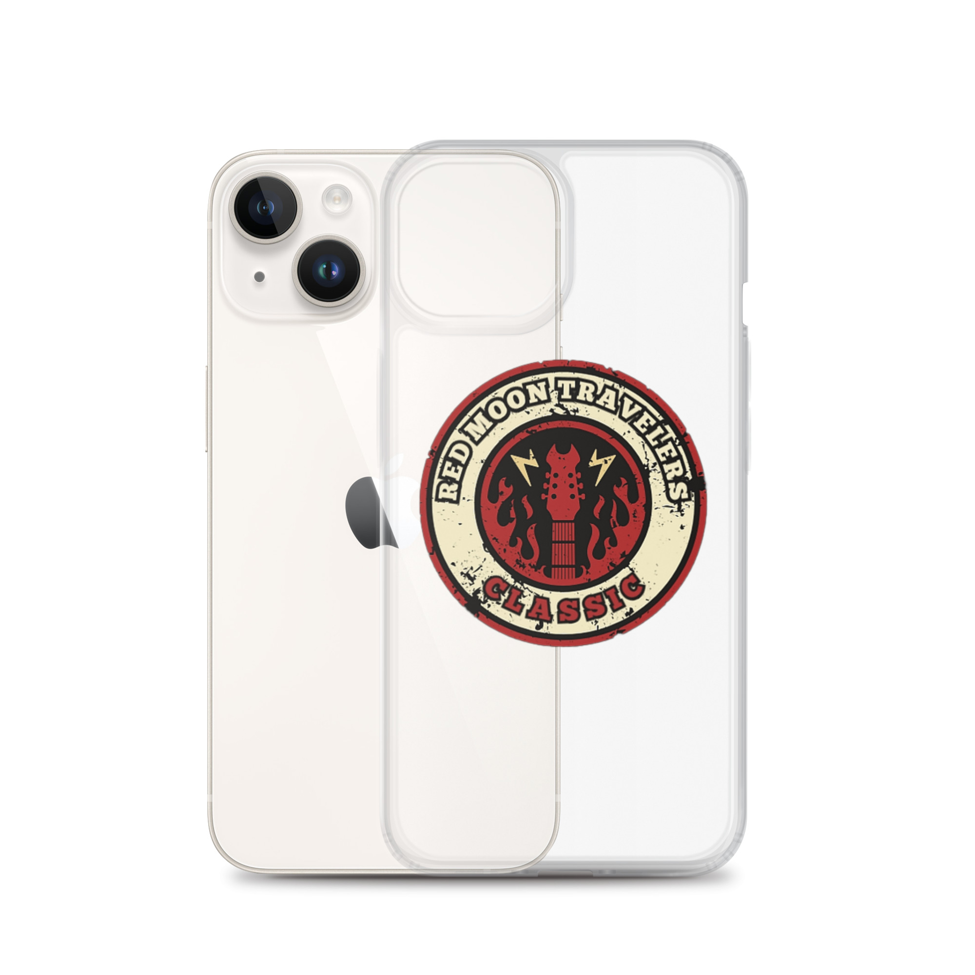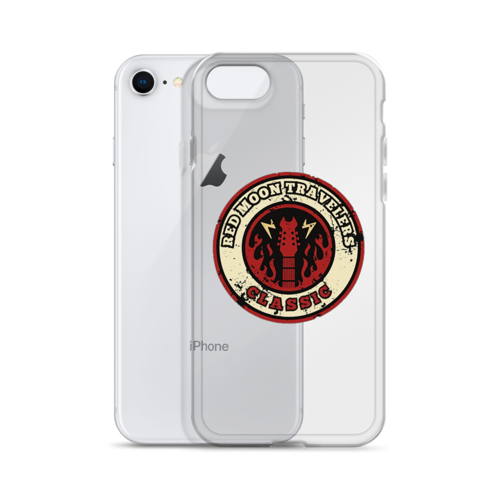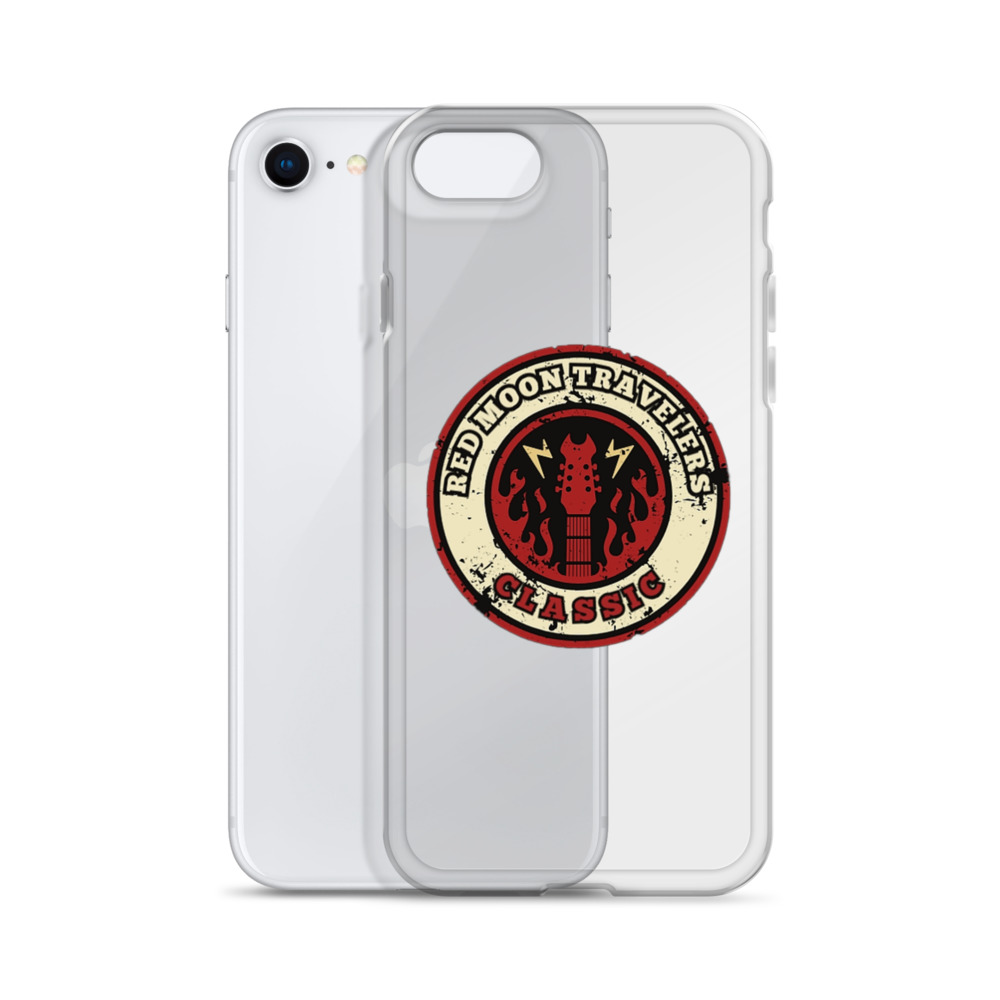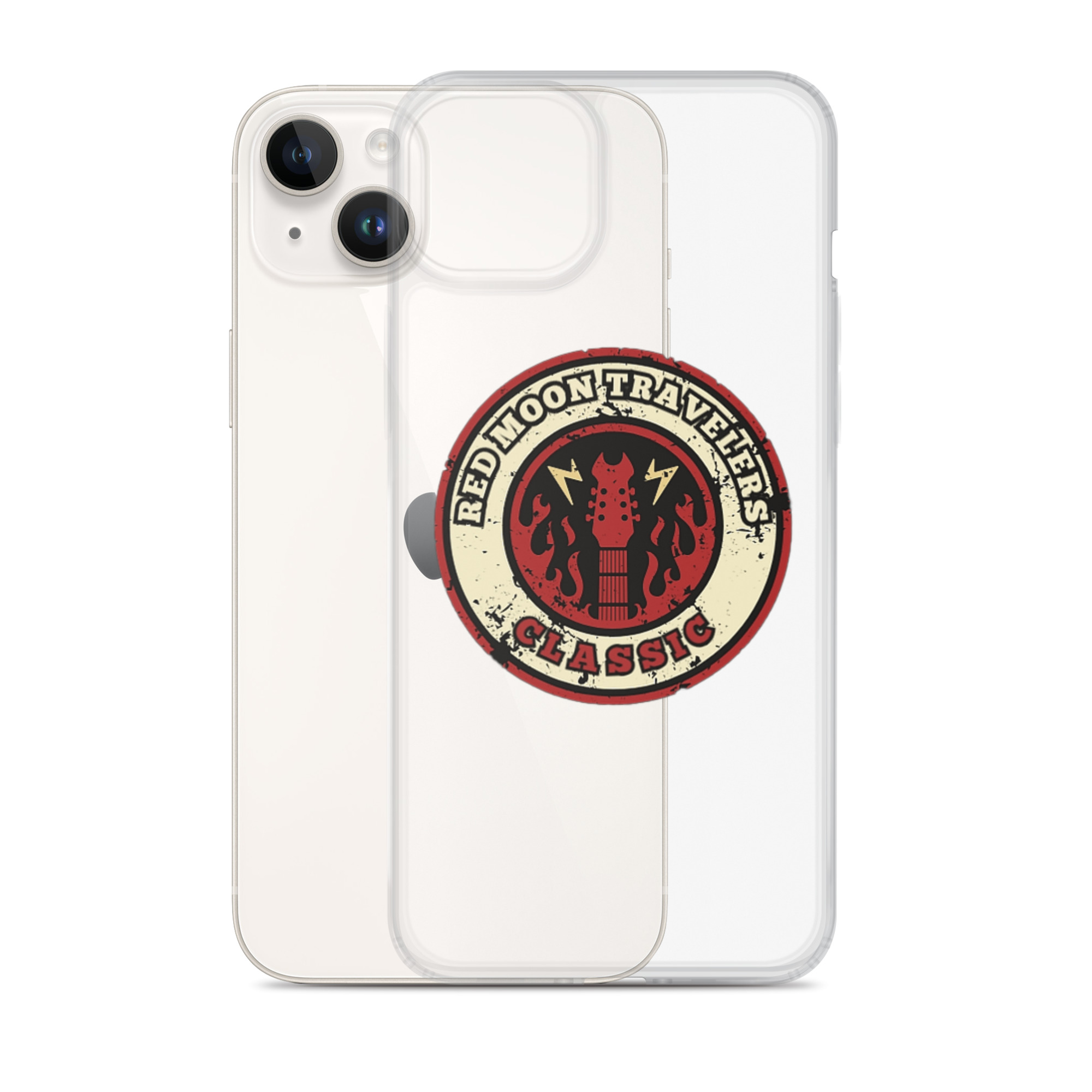 This clear sleek iPhone® case protects your phone from scratches and dirt. It has a solid back and flexible sides that make it easy to take on and off. Precisely aligned port openings. Displays the Red Moon Travelers logo.