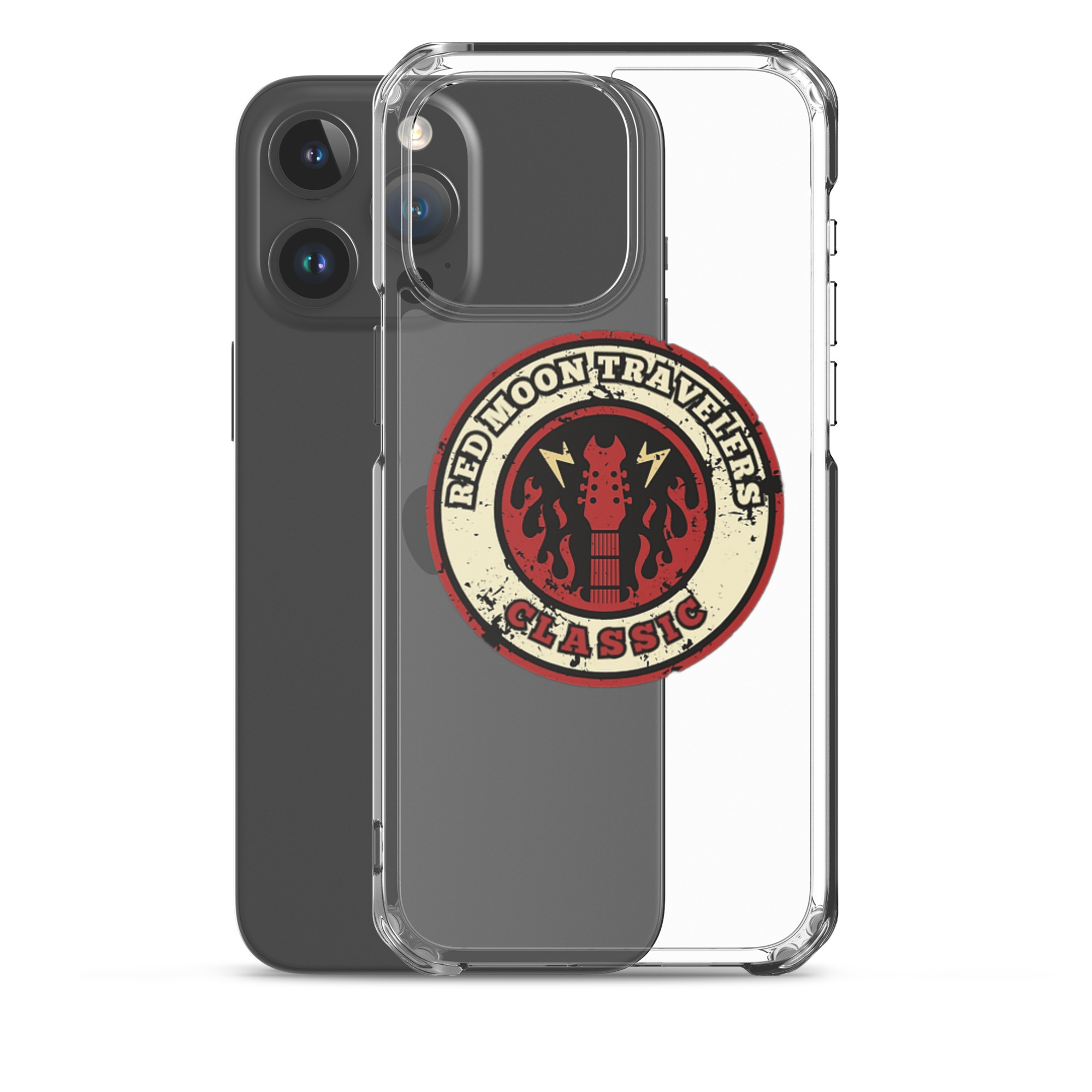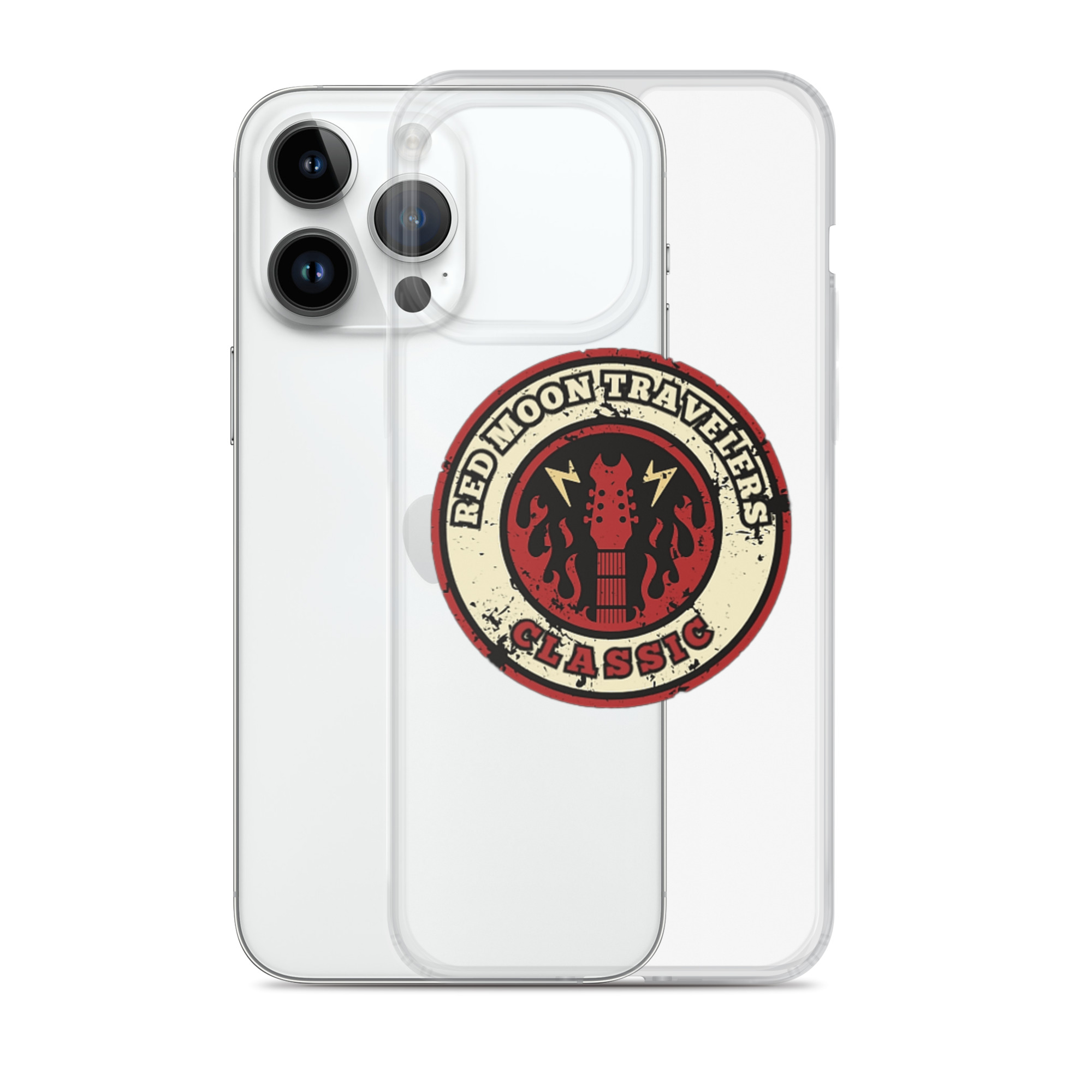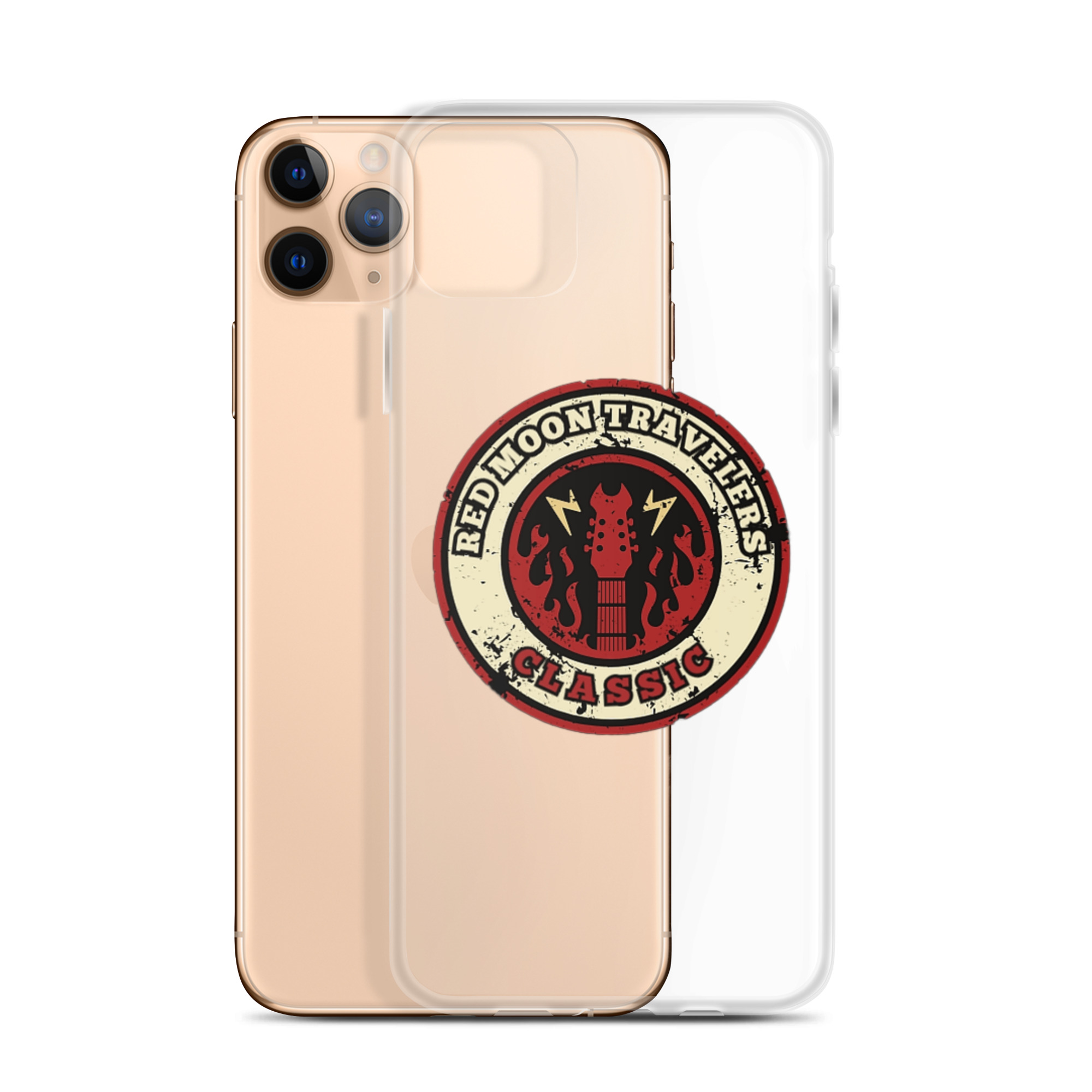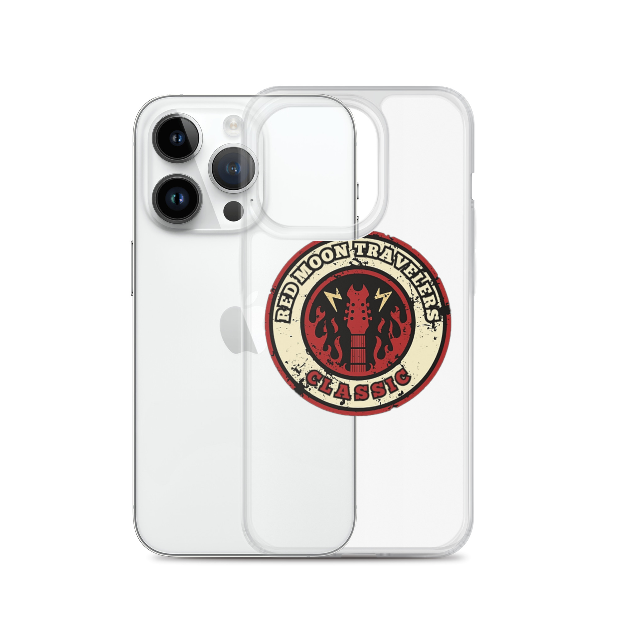 This clear sleek iPhone® case protects your phone from scratches and dirt. It has a solid back and flexible sides that make it easy to take on and off. Precisely aligned port openings. Displays the Red Moon Travelers logo.