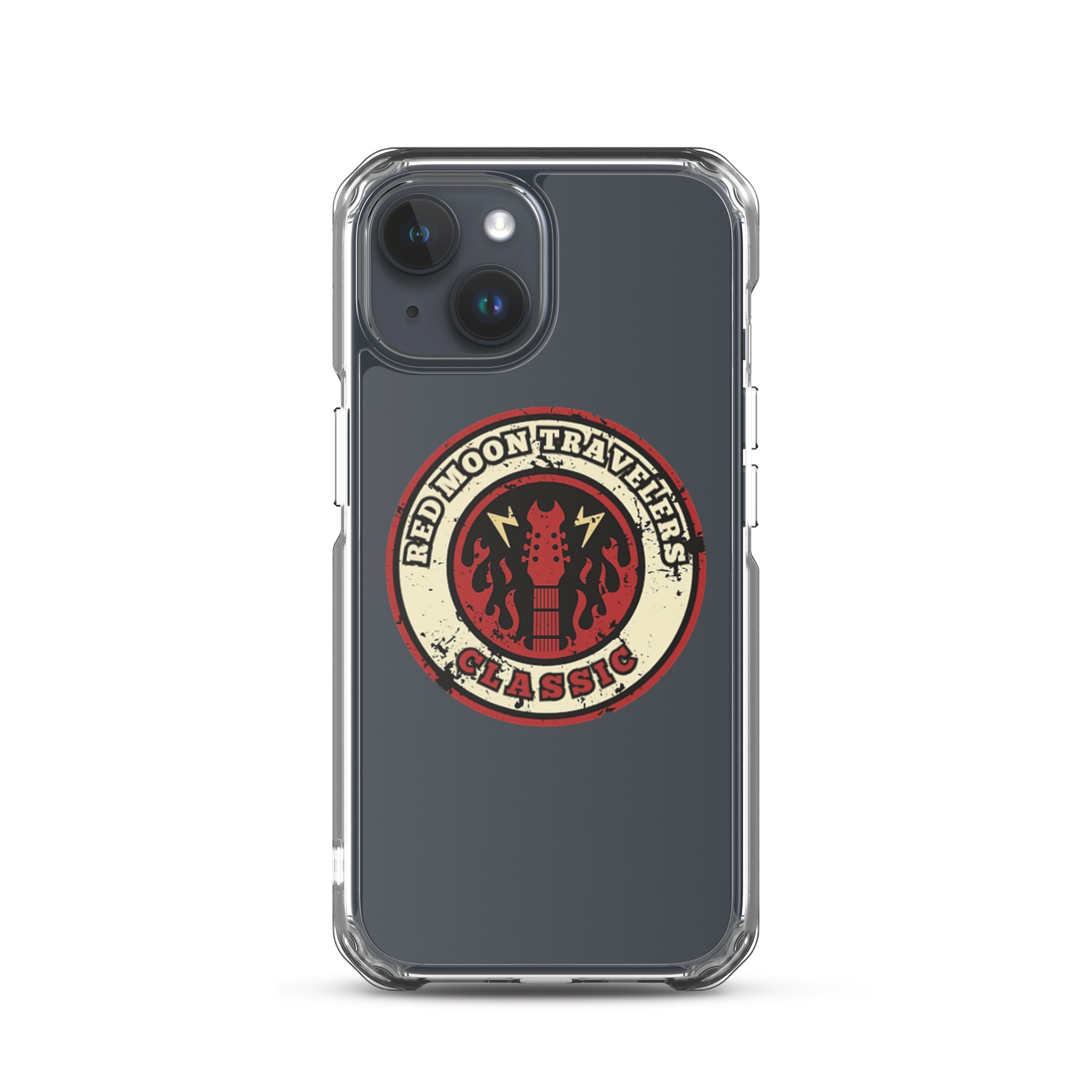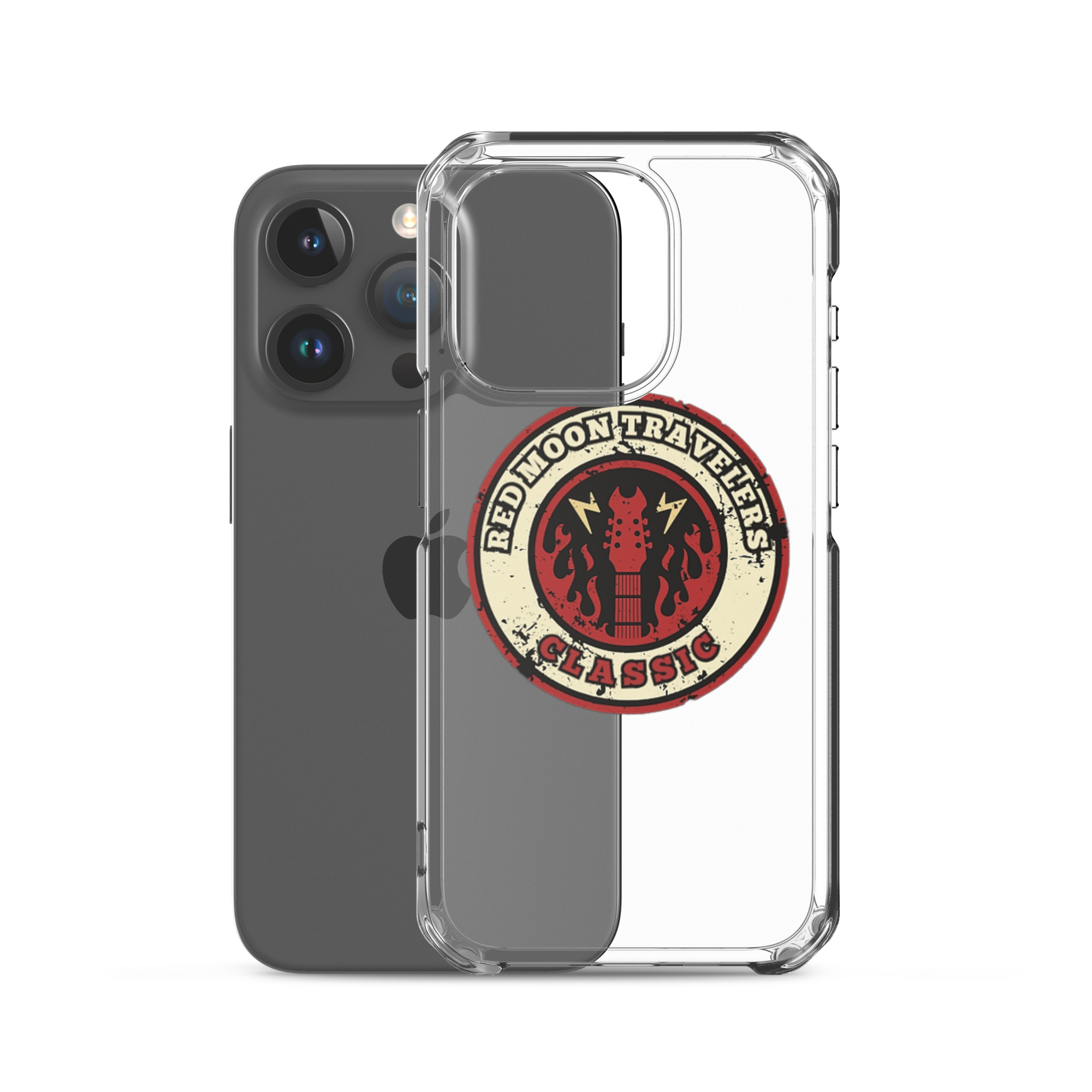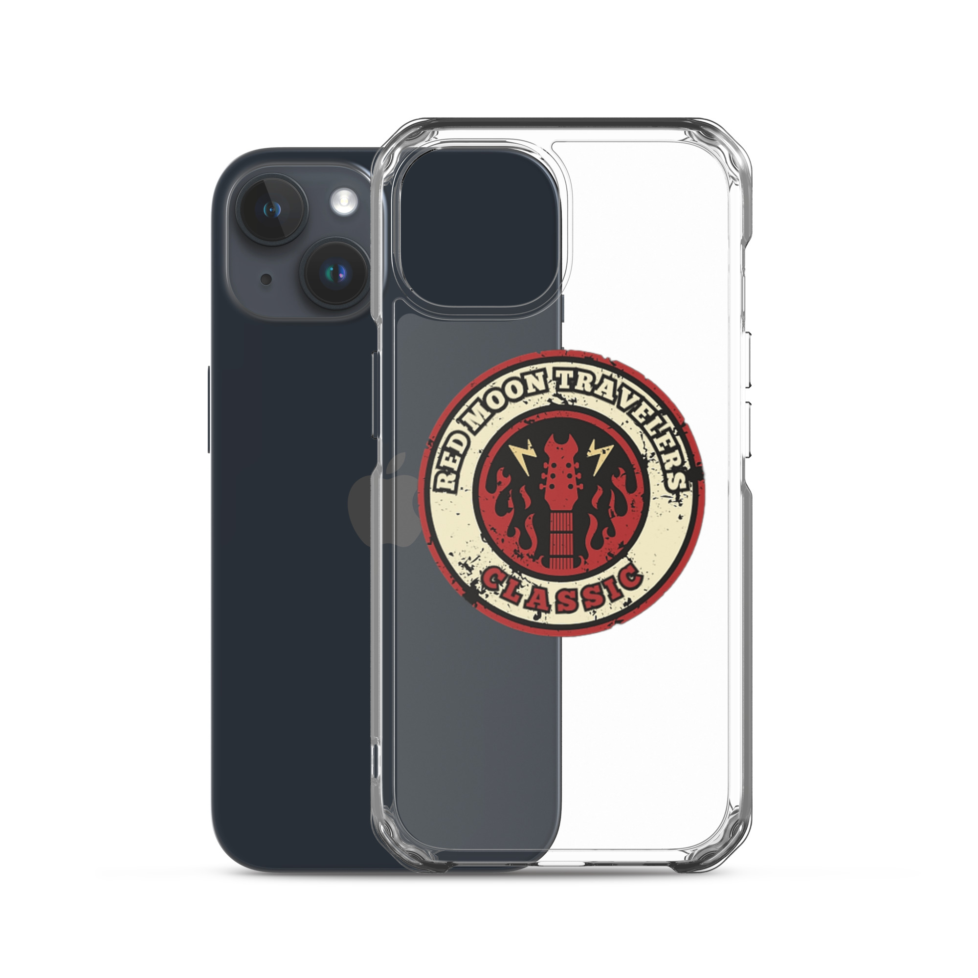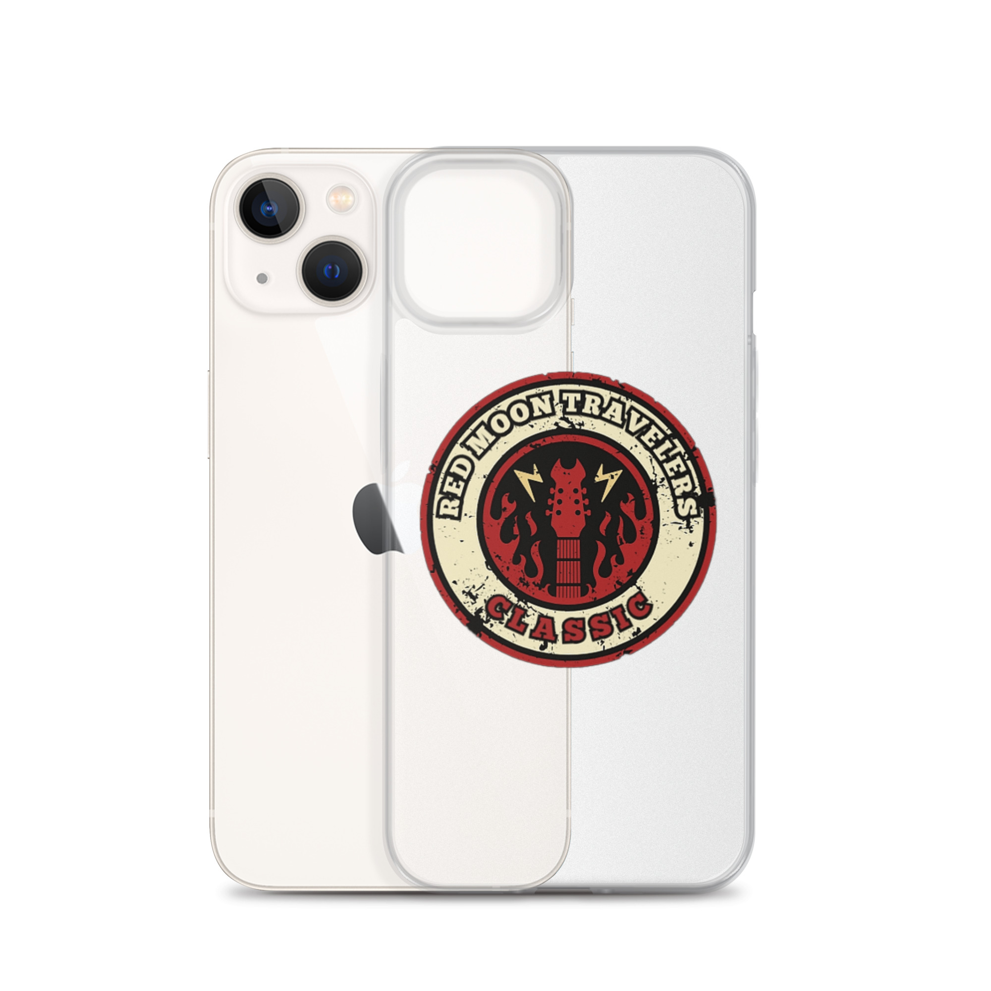 This clear sleek iPhone® case protects your phone from scratches and dirt. It has a solid back and flexible sides that make it easy to take on and off. Precisely aligned port openings. Displays the Red Moon Travelers logo.