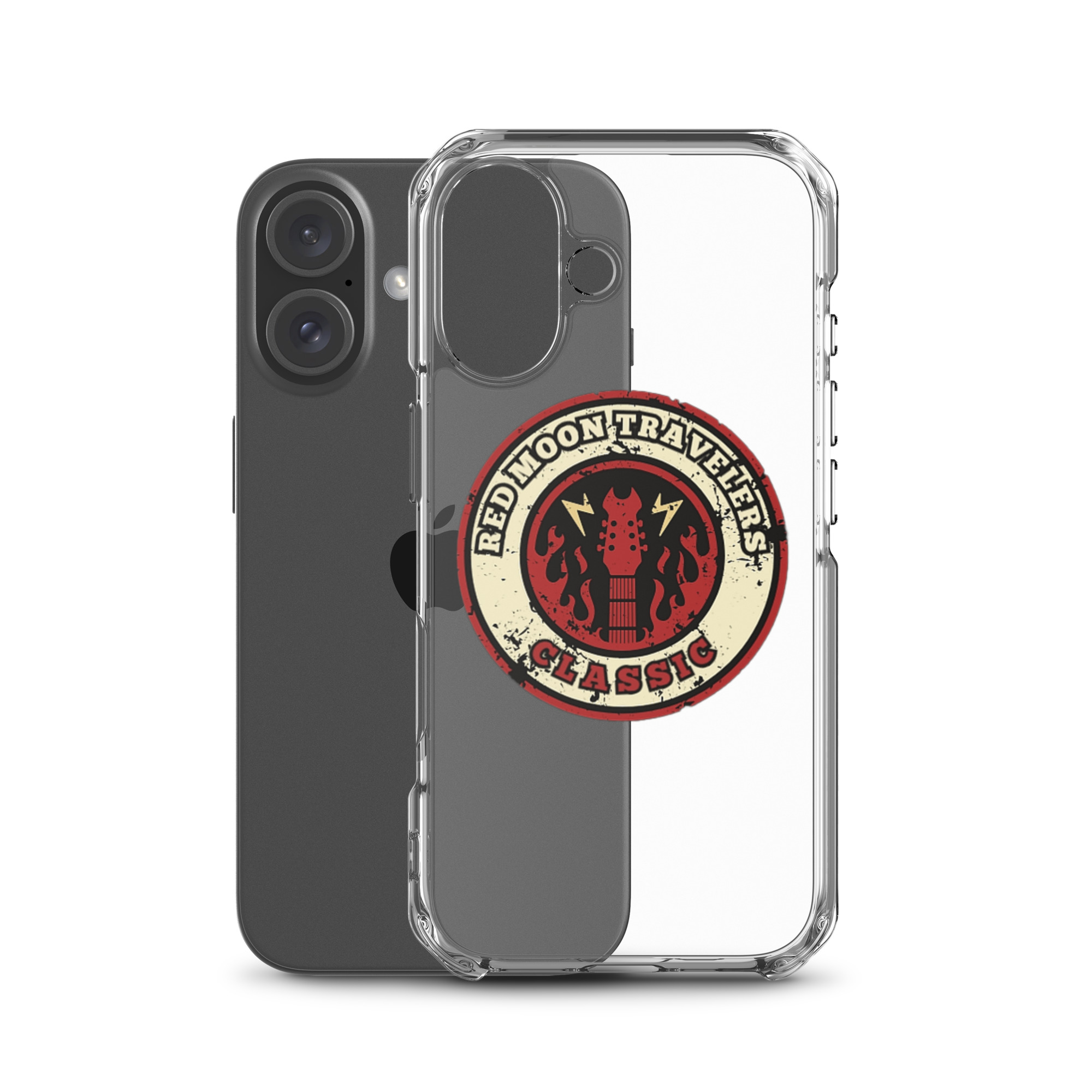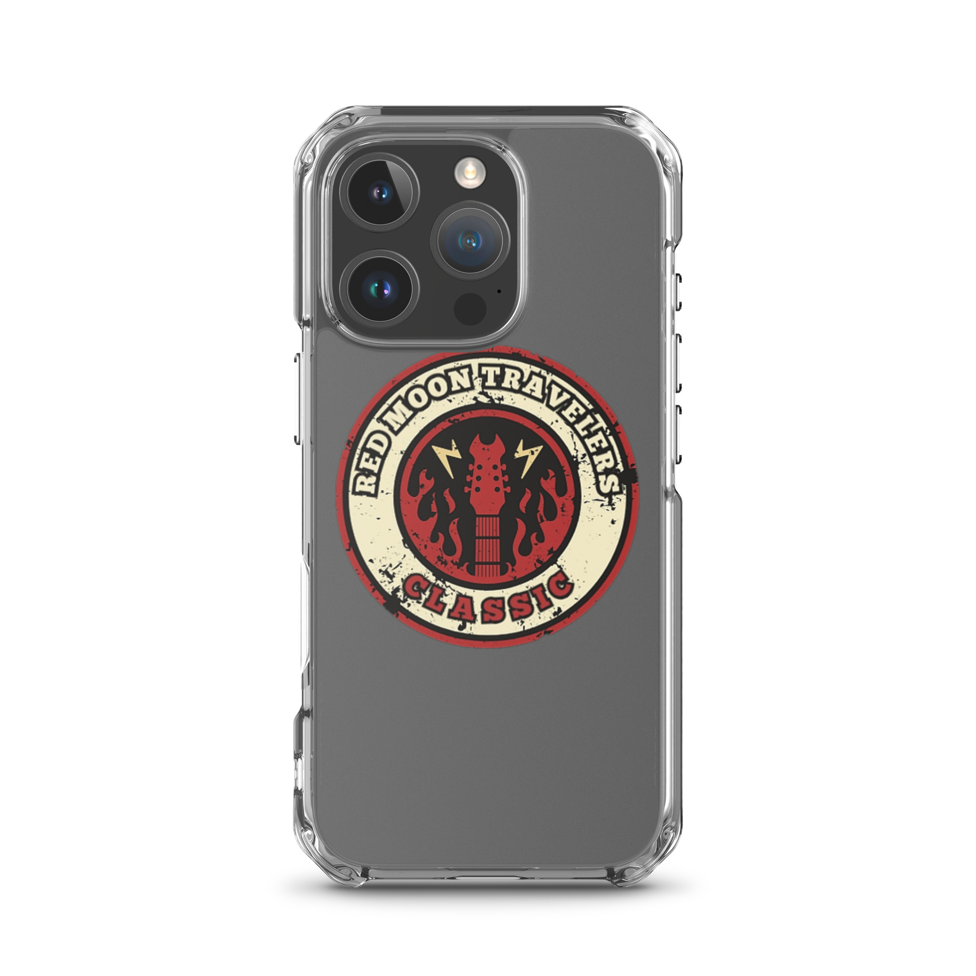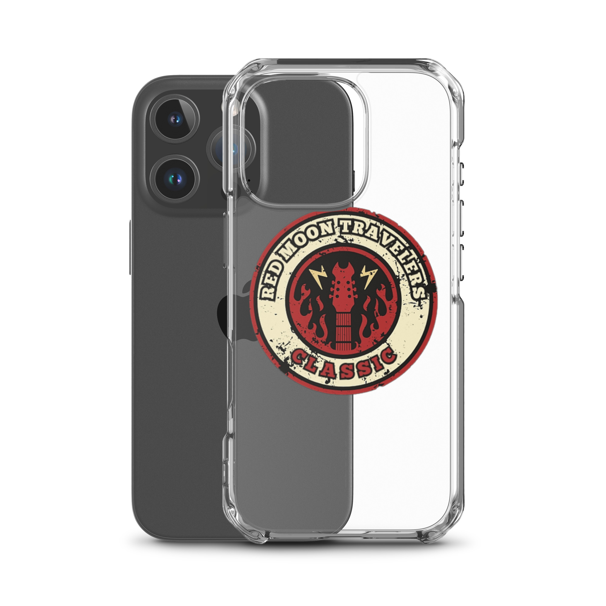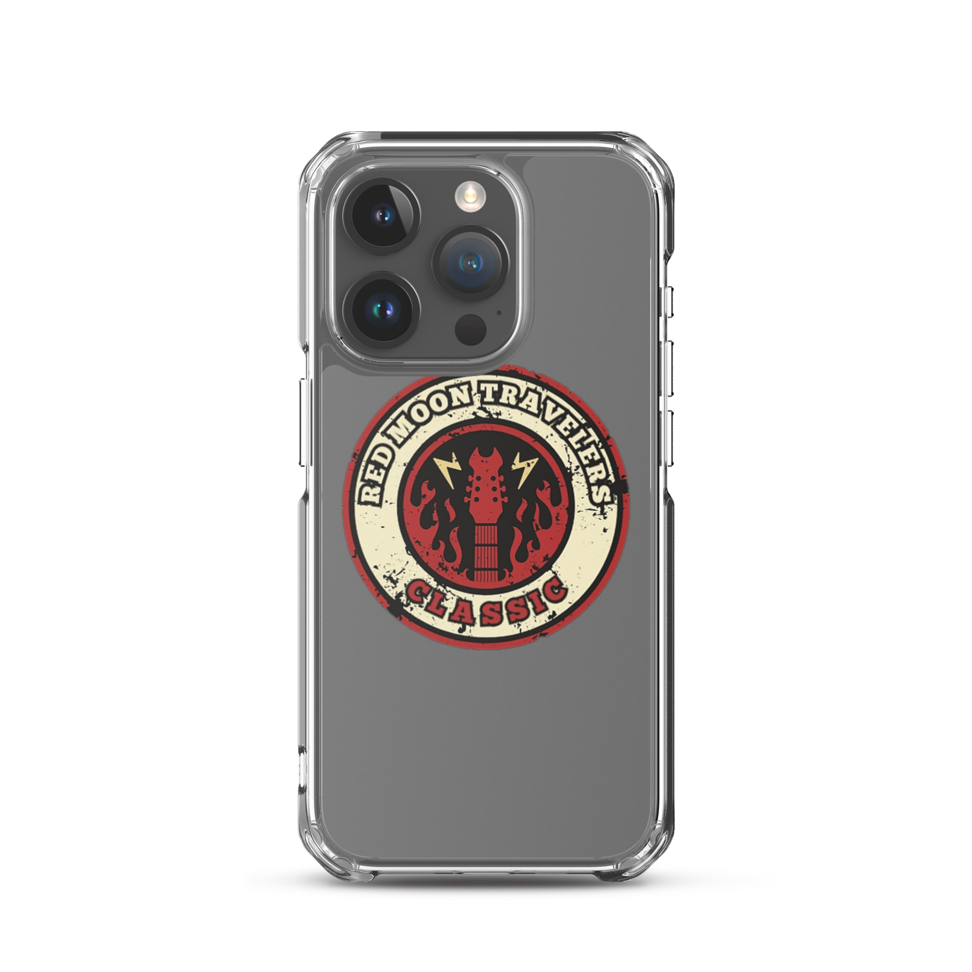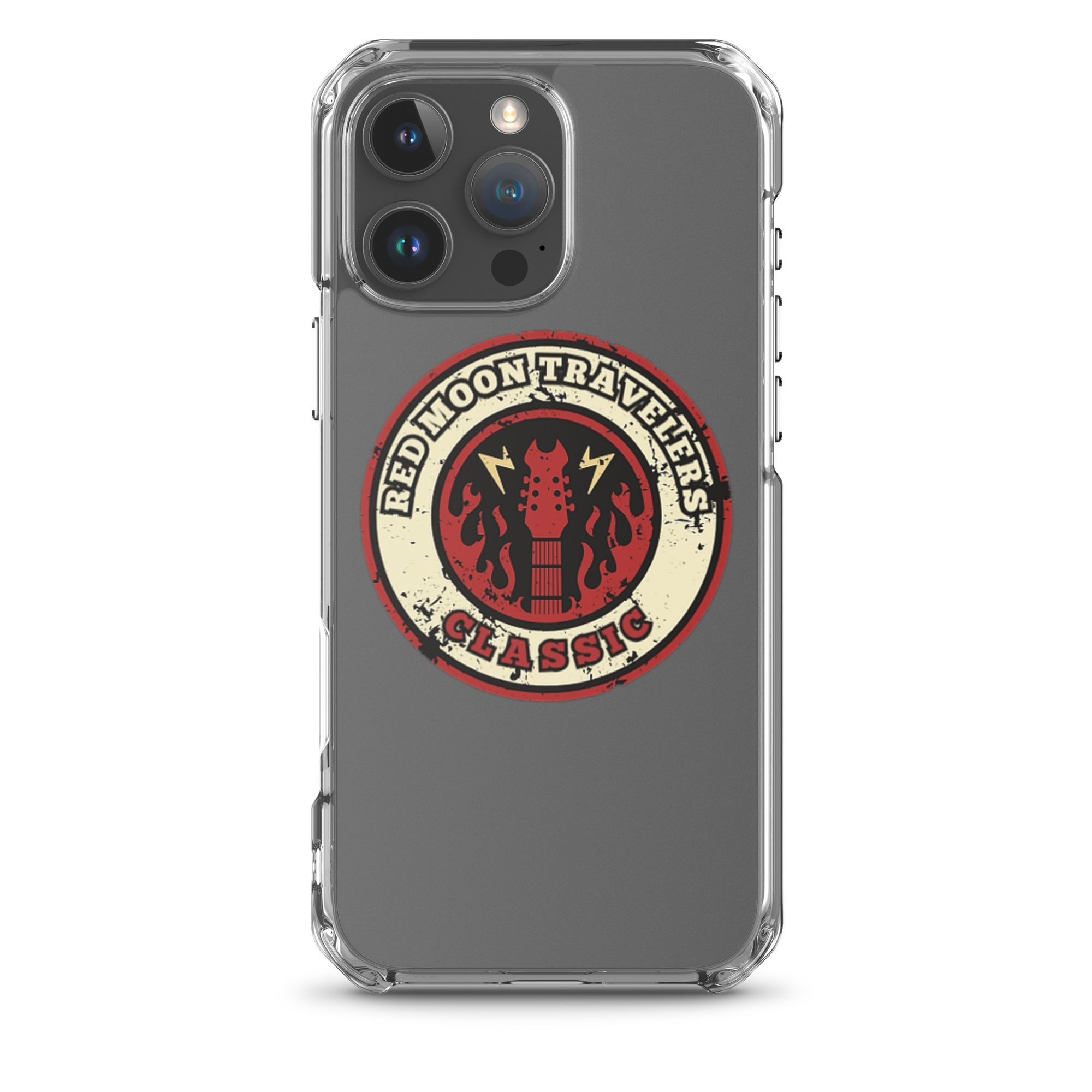 This clear sleek iPhone® case protects your phone from scratches and dirt. It has a solid back and flexible sides that make it easy to take on and off. Precisely aligned port openings. Displays the Red Moon Travelers logo.