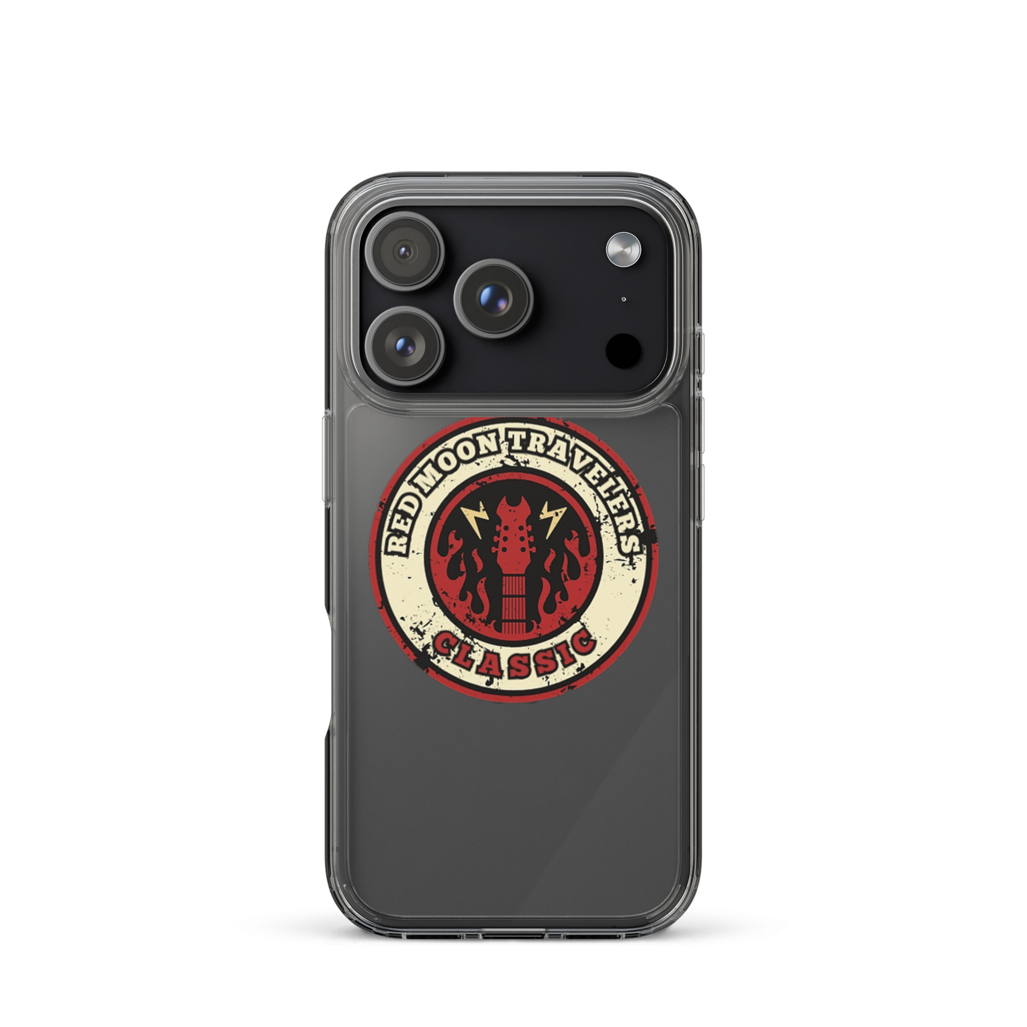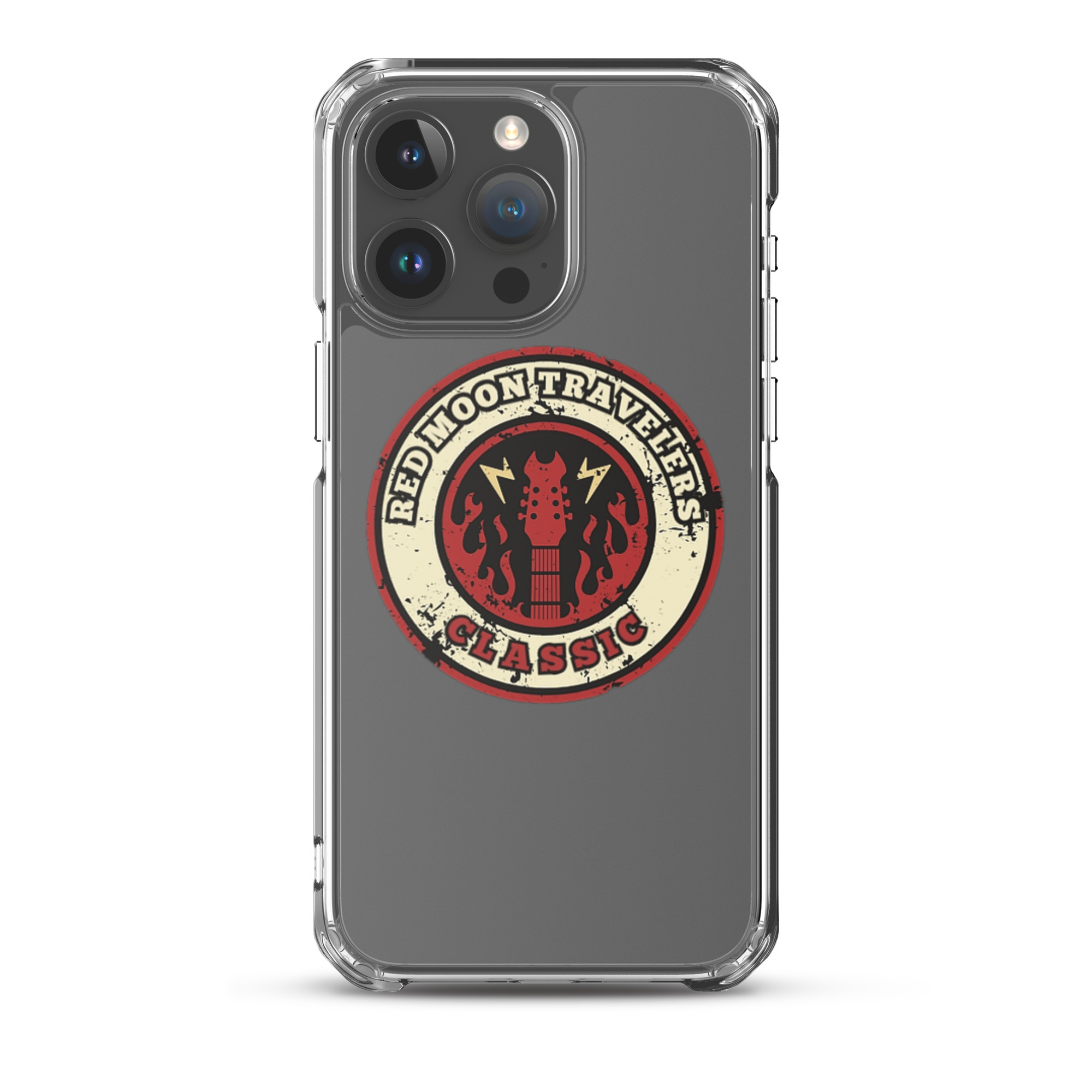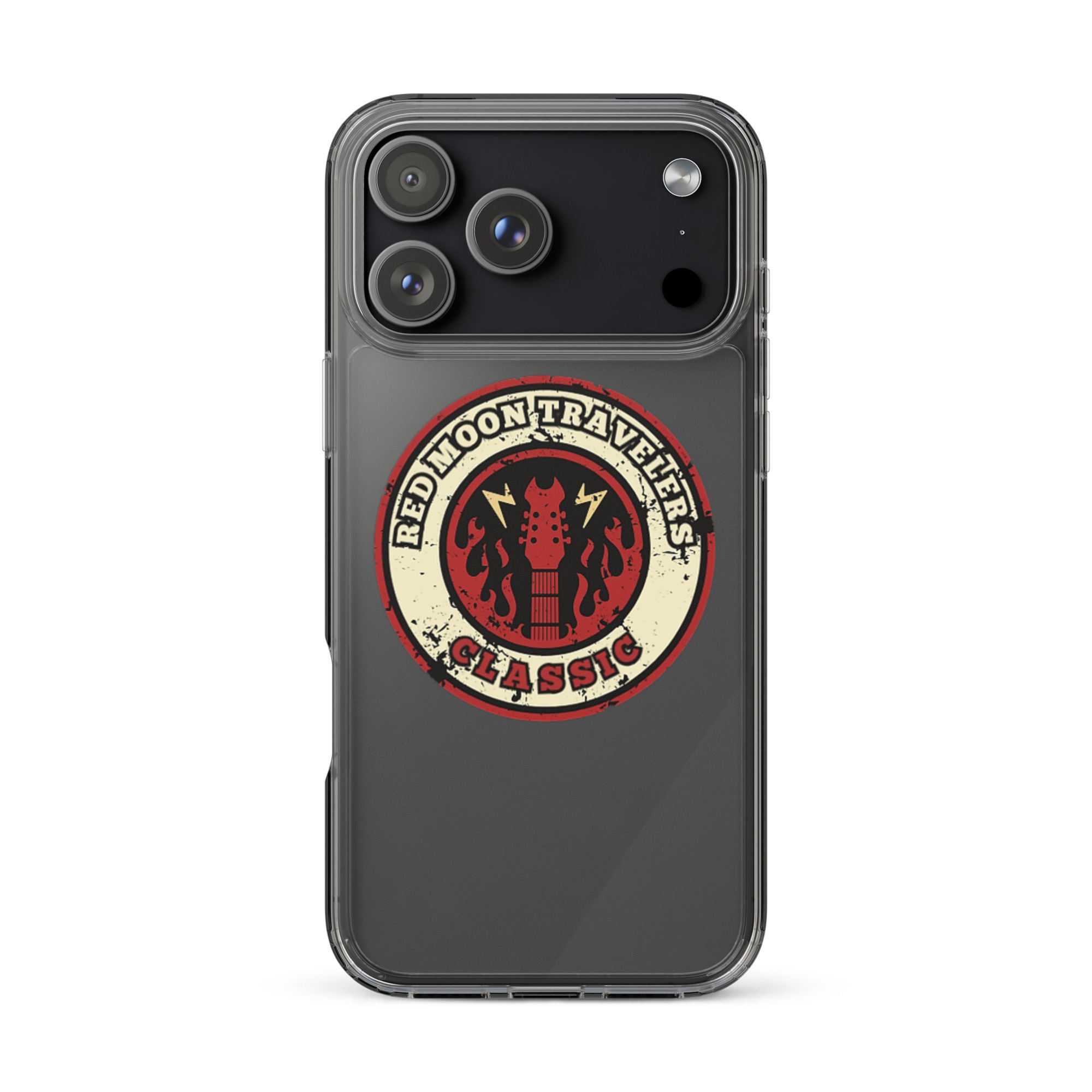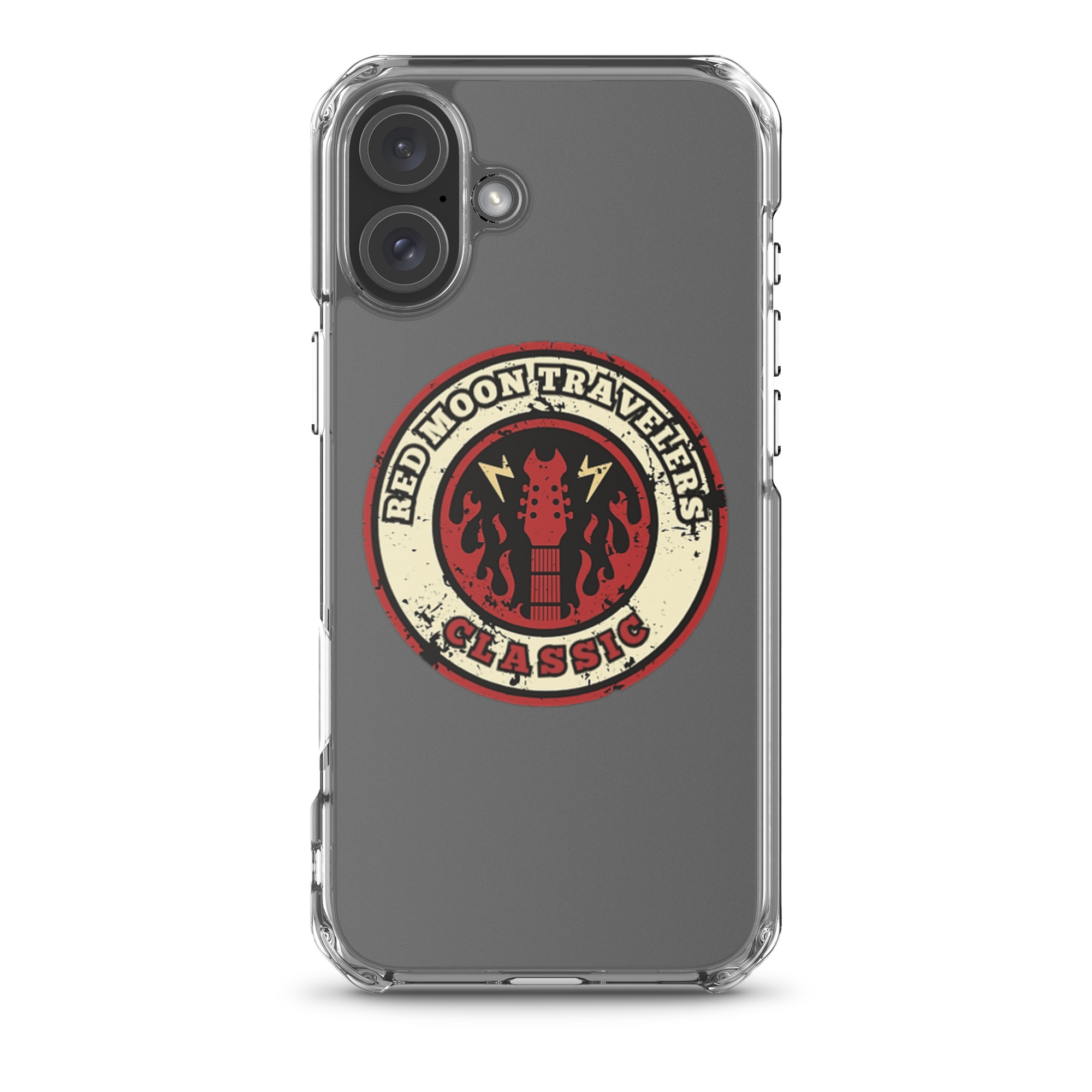 This clear sleek iPhone® case protects your phone from scratches and dirt. It has a solid back and flexible sides that make it easy to take on and off. Precisely aligned port openings. Displays the Red Moon Travelers logo.
