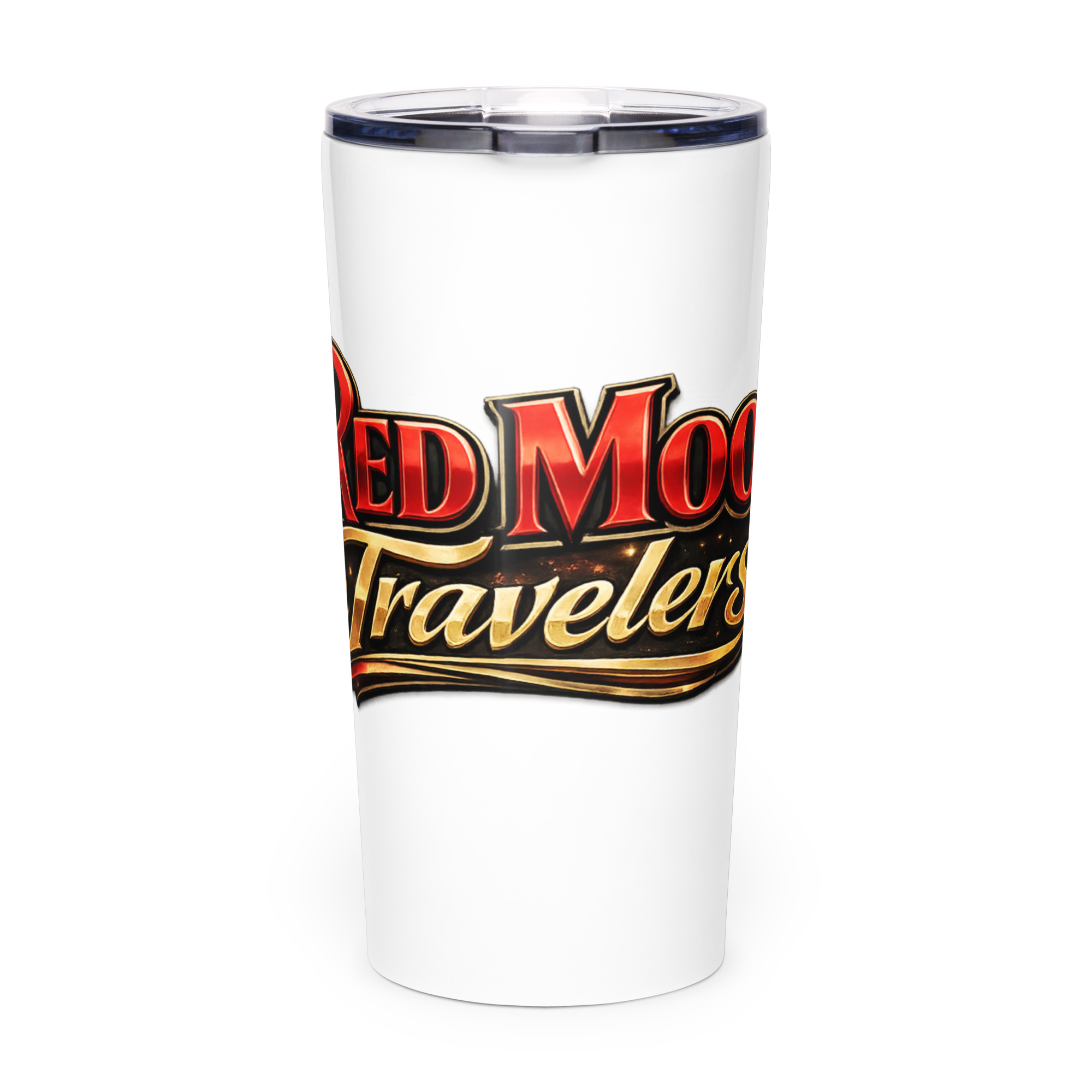 Stay sippin’ in style. This tapered 20-oz stainless steel tumbler keeps your drinks hot or cold on the go with a sleek, glossy finish and a spill-resistant lid. Perfect for daily commutes, workouts, or cozy mornings. Complete with the Red Moon Travelers logo.